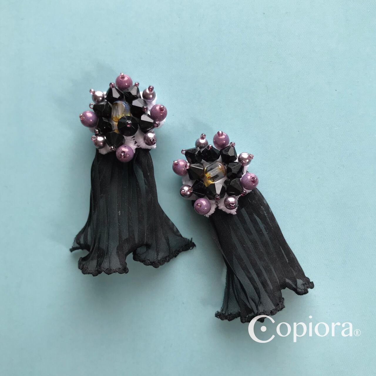 フリルとヴィンテージパーツを組み合わせたクリップ式イヤリング
